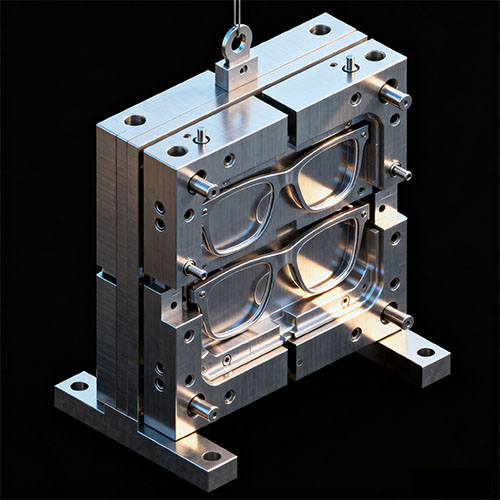 আইওয়্যার ফ্রেমের জন্য ইনজেকশন ছাঁচ বলতে ইঞ্জেকশন ছাঁচনির্মাণ প্রক্রিয়ার মাধ্যমে প্লাস্টিকের চশমার ফ্রেম (উপাদান যেমন লেন্স রিম, মন্দির এবং নাকের প্যাড বন্ধনী) তৈরির জন্য বিশেষভাবে ডিজাইন করা একটি কাস্টমাইজড ছাঁচকে বোঝায়। এর মূল কাজটি হল গলিত চশমার ফ্রেম-নির্দিষ্ট প্লাস্টিক যেমন TR90, PC, এবং ABSকে নির্ভুল গহ্বর এবং গেটিং সিস্টেমের মাধ্যমে ছাঁচে ইনজেকশন করা, চশমার ফ্রেম উপাদানগুলি গঠন করা যা আর্গোনোমিক্স এবং উচ্চ মাত্রিক নির্ভুলতা (সহনশীলতা ±0.02 মিমি) পূরণ করে। প্রথাগত ধাতব চশমার ফ্রেম ছাঁচের (জটিল প্রক্রিয়াকরণ এবং উচ্চ খরচ) সাথে তুলনা করে, চশমার ফ্রেমের জন্য ইনজেকশন ছাঁচগুলি জটিল বাঁকা পৃষ্ঠগুলির সমন্বিত ছাঁচকে উপলব্ধি করতে পারে (যেমন লেন্স রিম বক্রতা এবং মন্দিরের বাঁকানো বক্ররেখা) এবং কার্যকরী কাঠামো (যেমন কব্জা মাউন্টিং হোল এবং নাকের প্যাড কার্ডের স্লট, উচ্চ নকশা) সহ। একক-ছাঁচ উত্পাদন চক্র 15-25 সেকেন্ড)। এটি ব্যাপকভাবে প্লাস্টিকের চশমার ফ্রেম যেমন মায়োপিয়া চশমা, সানগ্লাস এবং স্পোর্টস গগলসের ব্যাপক উত্পাদনে ব্যবহৃত হয়।