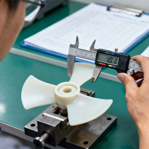 ফ্যান ব্লেডের লাইটওয়েট ডিজাইন: PP বা ABS পাতলা দেয়ালযুক্ত ইনজেকশন ব্যবহার করা হয়, যার একটি একক ফ্যান ব্লেডের ওজন ≤ 20g। ঘূর্ণনের সময় কেন্দ্রাতিগ শক্তি ছোট হয়, মোটর লোড হ্রাস করে; ঘূর্ণনের সময় বায়ুপ্রবাহের আওয়াজ এড়াতে ফ্যানের ব্লেডের প্রান্তগুলি গোলাকার হয়;
