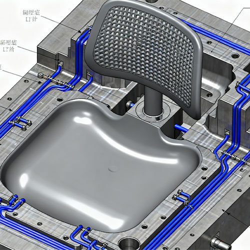 ছাঁচ গহ্বর নকশা: একক বা ডবল গহ্বর ছাঁচ ব্যবহার করে (চেয়ার আসন ছাঁচ 1 ছাঁচ 1 গহ্বর, পাঁচ তারকা ফুট ছাঁচ 1 ছাঁচ 2 গহ্বর); ঠালা কাঠামোর জন্য, ছাঁচ সম্পূর্ণ গর্ত গঠন নিশ্চিত করার জন্য একটি কোর টানা প্রক্রিয়া দিয়ে সজ্জিত করা হয়;